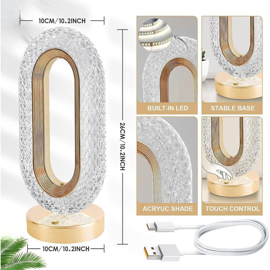 Encasa Crystal LED Table Lamp | Rechargeable Cordless Light | Modern Bedside & Ambient Decor